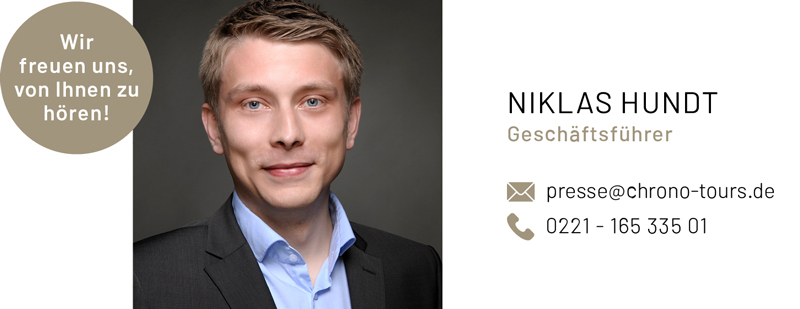Sie haben Fragen zu chronotours oder benötigen Materialien für Ihre Publikation? Gerne unterstützen wir Ihr Anliegen nach Kräften und versorgen Sie mit den benötigten Informationen.